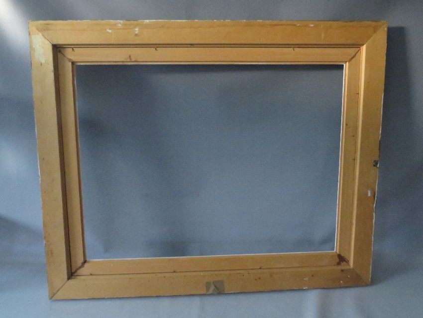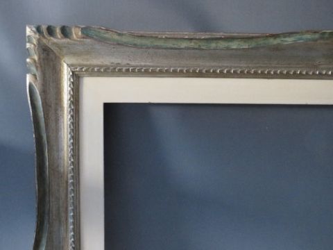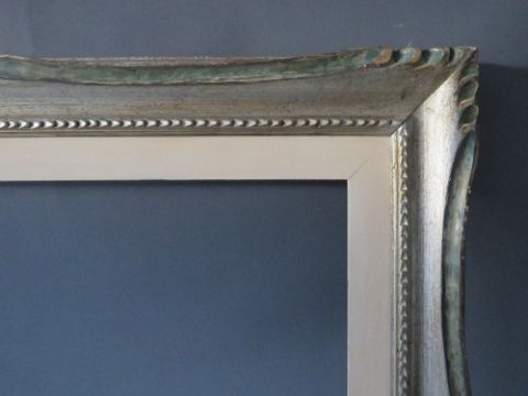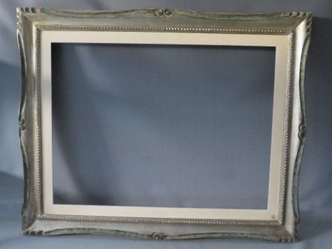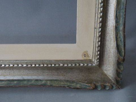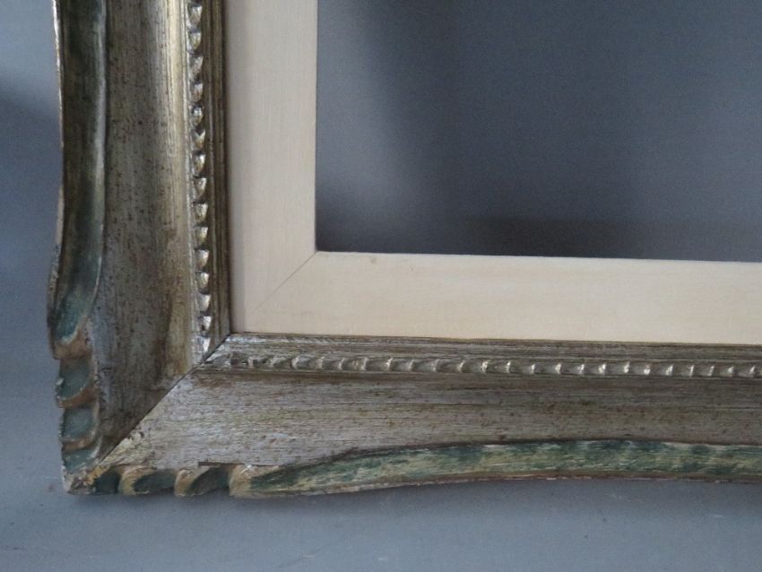 A 20TH CENTURY CARVED WOODEN SILVERED FRAME WITH PAINTED SLIP, frame W 8 cm, slip rebate 80 x 60 cm, frame rebate 89 x 69 cm