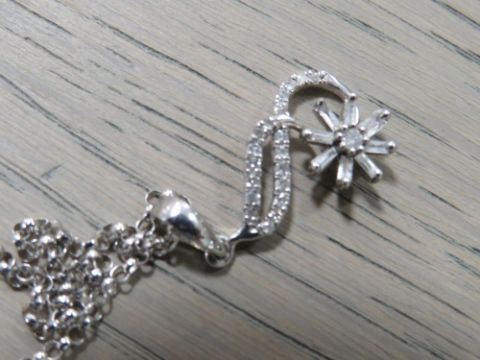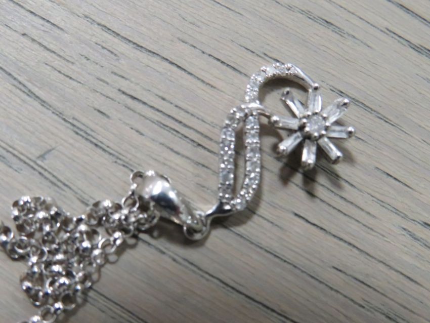 A LADIES 10K DIAMOND SET WHITE GOLD PENDANT ON A 9CT WHITE GOLD CHAIN
