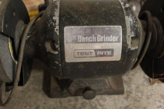 A RECORD RPB58 BAND SAW WITH A PERFORM CCM MORTICER AND A 6" TEST RITE BENCH GRINDER