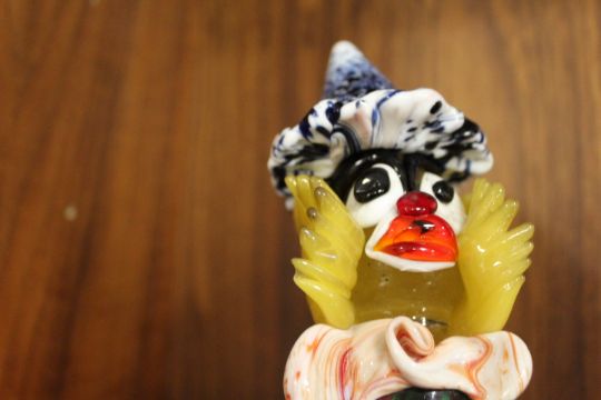 A MURANO GLASS FIGURE OF A CLOWN, H 33 cm, together with a Perthshire paperweight with central 'P' cane and another paperweight (3)