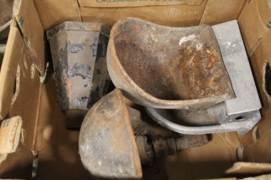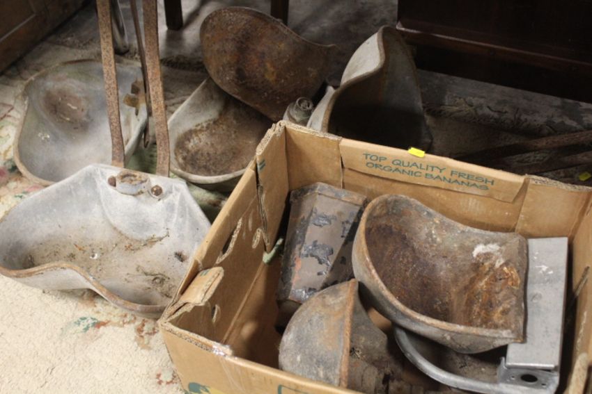 A SELECTION OF ASSORTED VINTAGE CAST METAL ANIMAL FEEDERS / WATER TROUGHS ETC