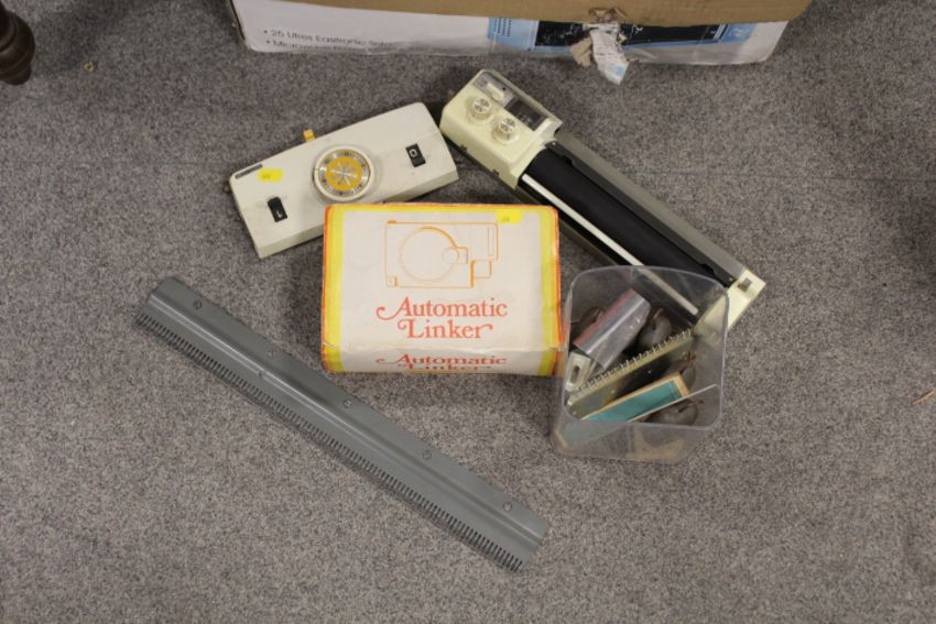 A BOX OF ASSORTED KNITTING & SEWING MACHINE ACCESSORIES