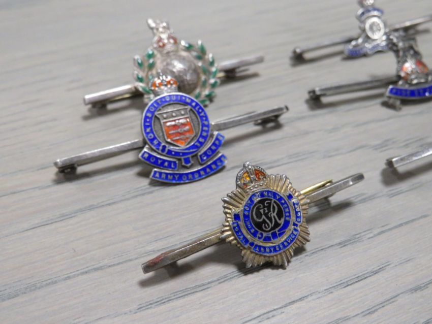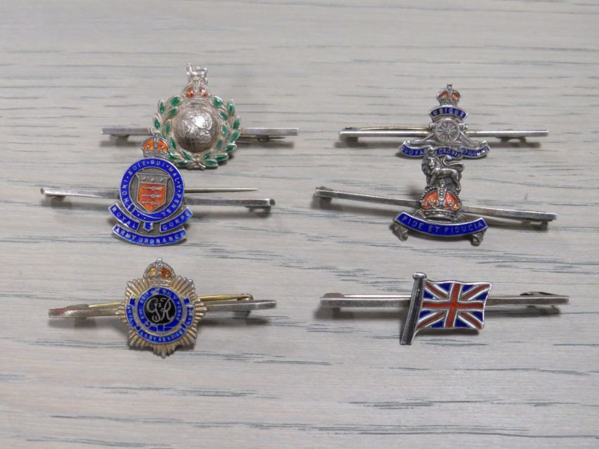 SIX MILITARY SILVER AND ENAMEL BAR BROOCHES