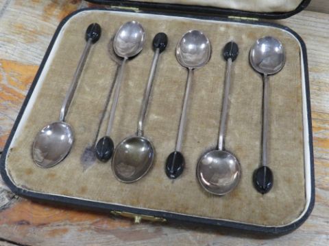 A CASED SET OF HALLMARKED SILVER COFFEE BEAN SPOONS