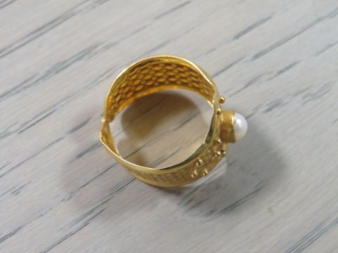 A CONTINENTAL 22 CT GOLD RING SET WITH SINGLE PEARL STAMPED 22K - APPROX 4.2 G