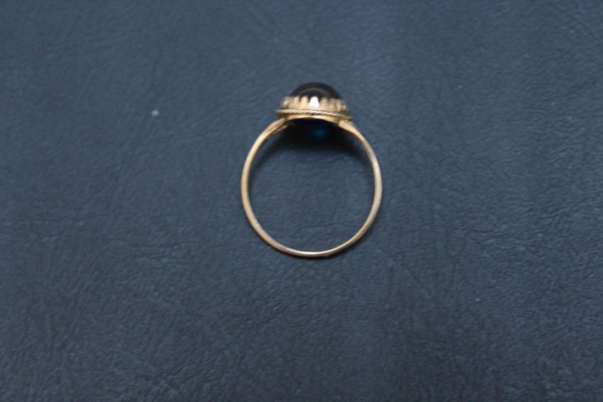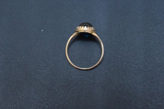 A HALLMARKED 9 CARAT GOLD RING, set with a cabochon sapphire style stone, approx weight 1.6g, ring size N