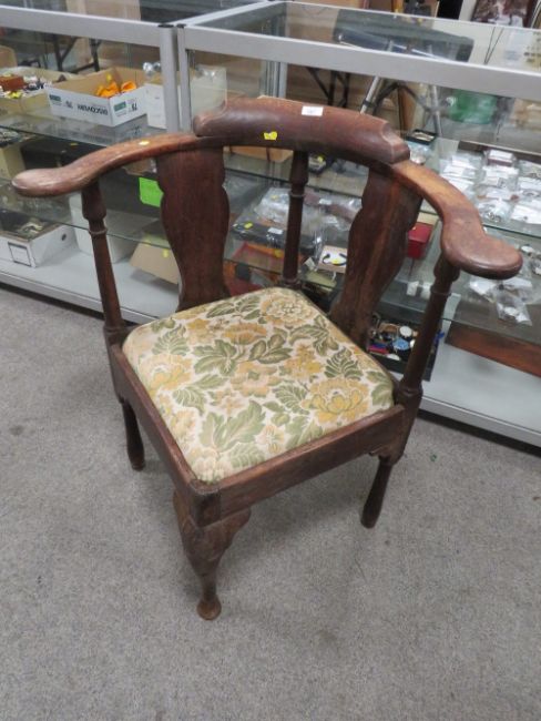 AN ANTIQUE CORNER ARMCHAIR