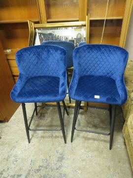 A PAIR OF MODERN BLUE KITCHEN STOOLS