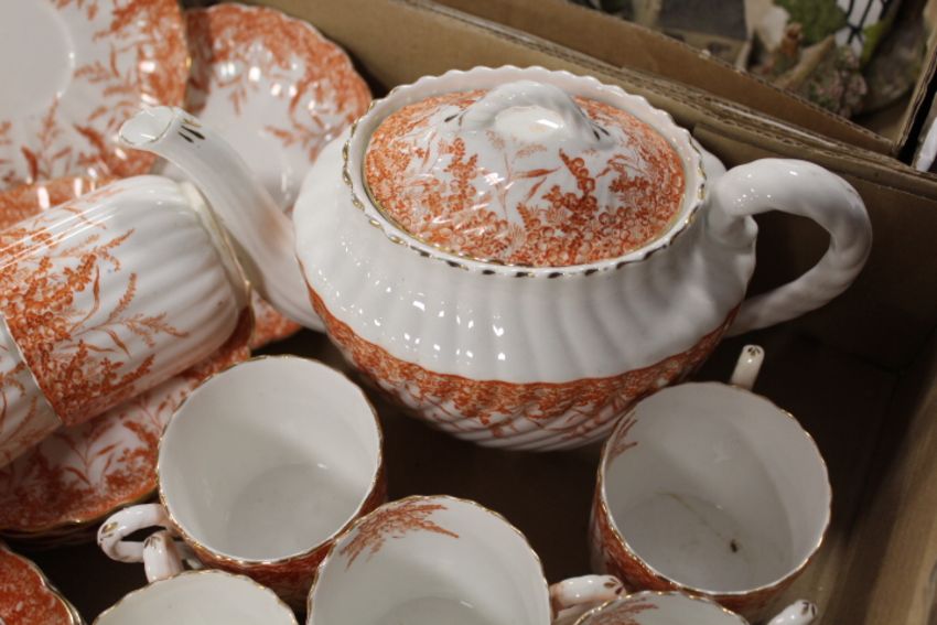 A TRAY OF KAY & Co WORCESTER CHINA TEAWARE WITH FLORAL EMBELLISHMENT