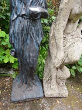 TWO STONE FIGURATIVE FEMALE GARDEN STATUES H-86 CM TALLEST