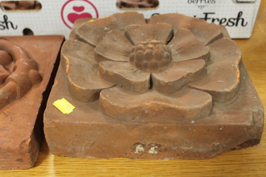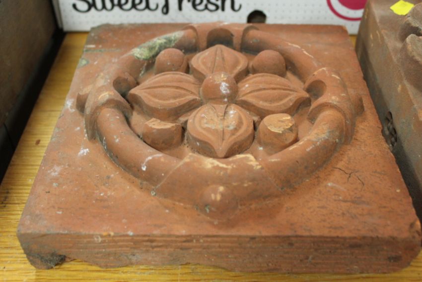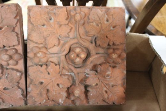 A SELECTION OF SIX ASSORTED VINTAGE TERRACOTTA PATTERNED TILES