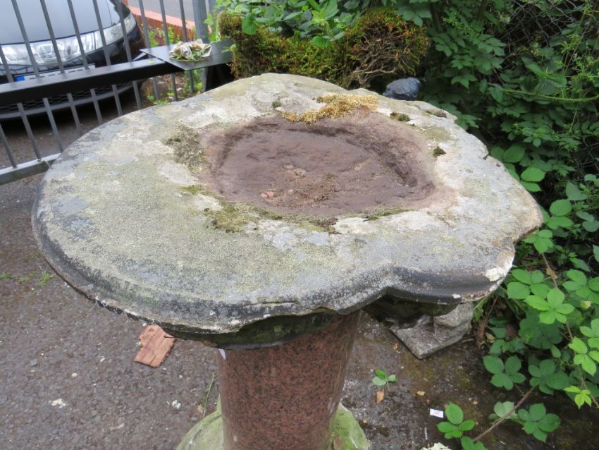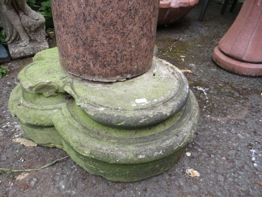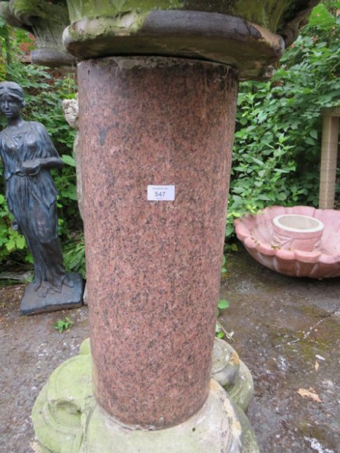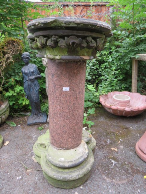 TWO ANCIENT SANDSTONE ARCHITECTURAL PLINTHS WITH A MARBLE COLUMN