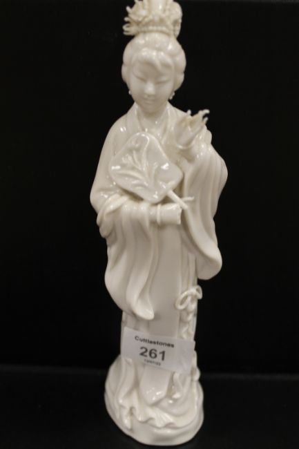 A BLANC DE CHINE FIGURE OF AN ORIENTAL LADY A/F