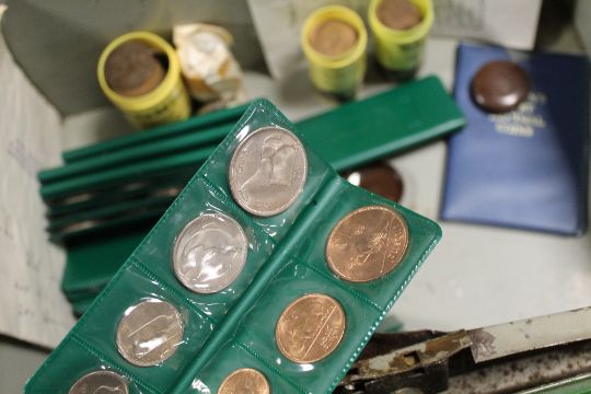 A COIN COLLECTION CONTAINED WITHIN A GREEN BANKING TIN