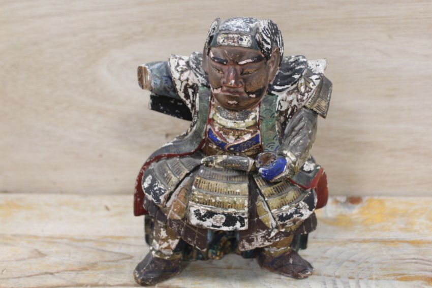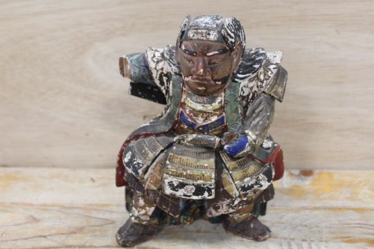 AN EARLY SEATED POLYCHROME FIGURE OF A SEATED SAMURAI