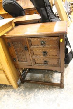 A SMALL OAK REPRODUCTION CABINET WITH DRAWERS