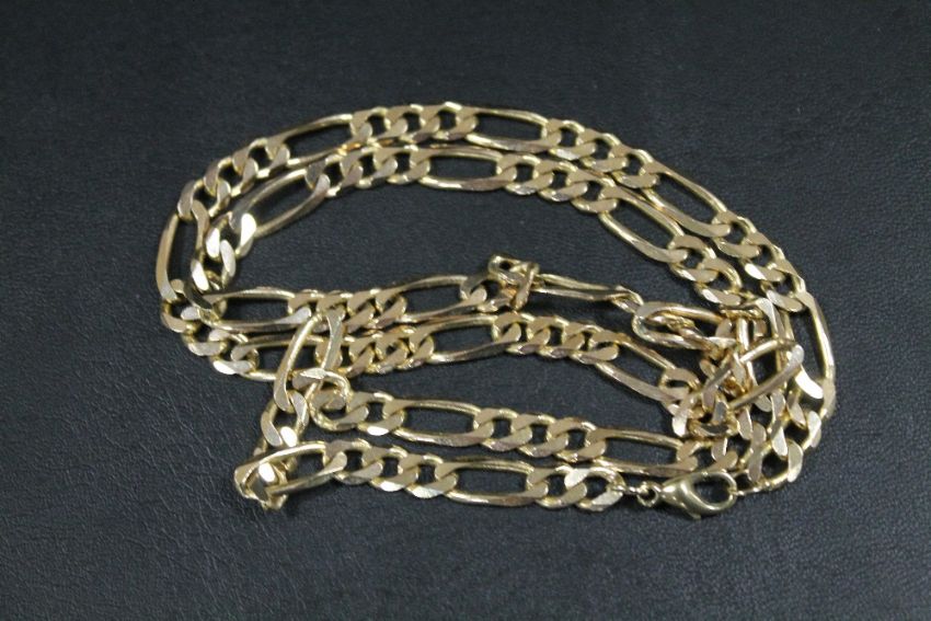 A YELLOW METAL NECKLACE WITH 9CT GOLD HALLMARKS TO CONNECTION LINK