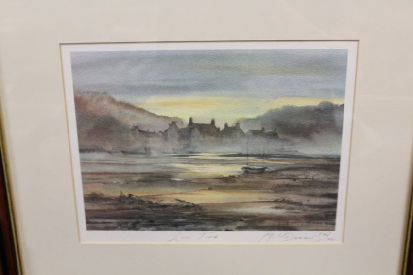 FOUR FRAMED AND GLAZED SIGNED LIMITED EDITION PRINTS OF ESTUARY. SCENES AND A COUNTRYSIDE EXAMPLE TO INCLUDE GILLIAN McDONALD PRINTS