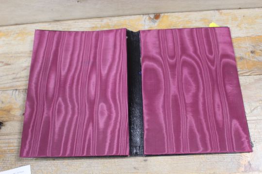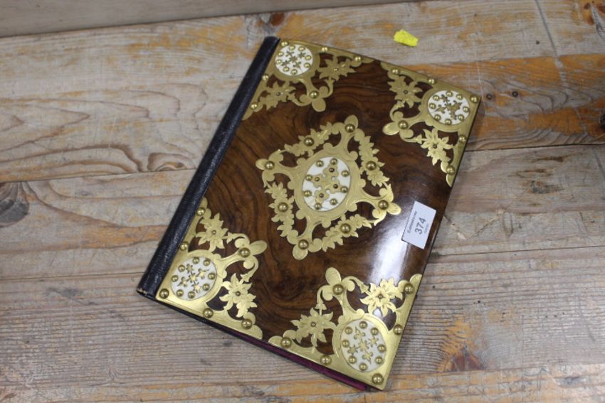 A 19TH CENTURY DECORATIVE WOODEN AND BRASS FOLDER