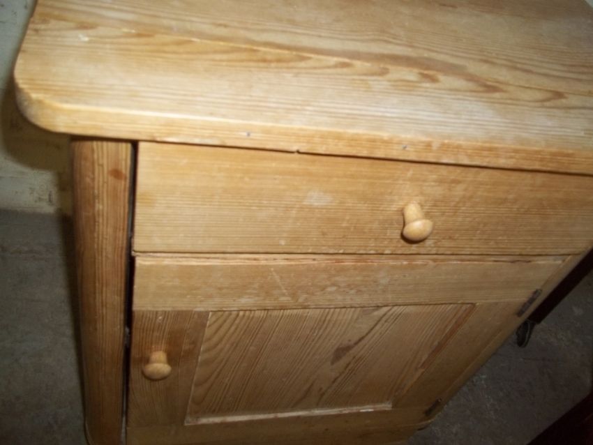 3 ITEMS TO INCLUDE A HEXAGONAL ANTIQUE EDWARDIAN SIDE TABLE, A PINE CUPBOARD A/F AND A TEA SERVING TROLLEY