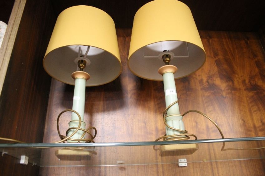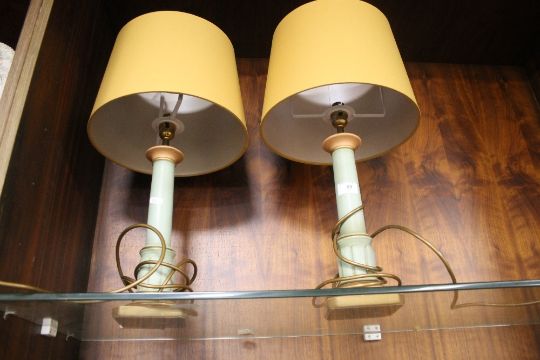 A PAIR OF TABLE LAMPS WITH MATCHING SHADES