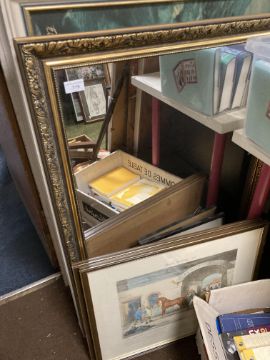 THREE PICTURE TOGETHER WITH A GILT FRAME MIRROR