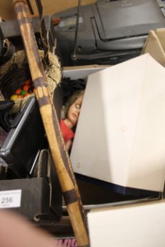 THREE TRAYS TO INCLUDE CHILDS DOLLS, SAT NAV, CAMERA, BOHEMIAN CRYSTAL, ARTIFICIAL PLANTS, PICTURES ETC