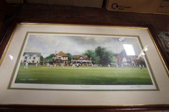 FIVE PICTURES INCLUDING SIGNED CRICKET SCENE , GOLF SCENE ETC A/F