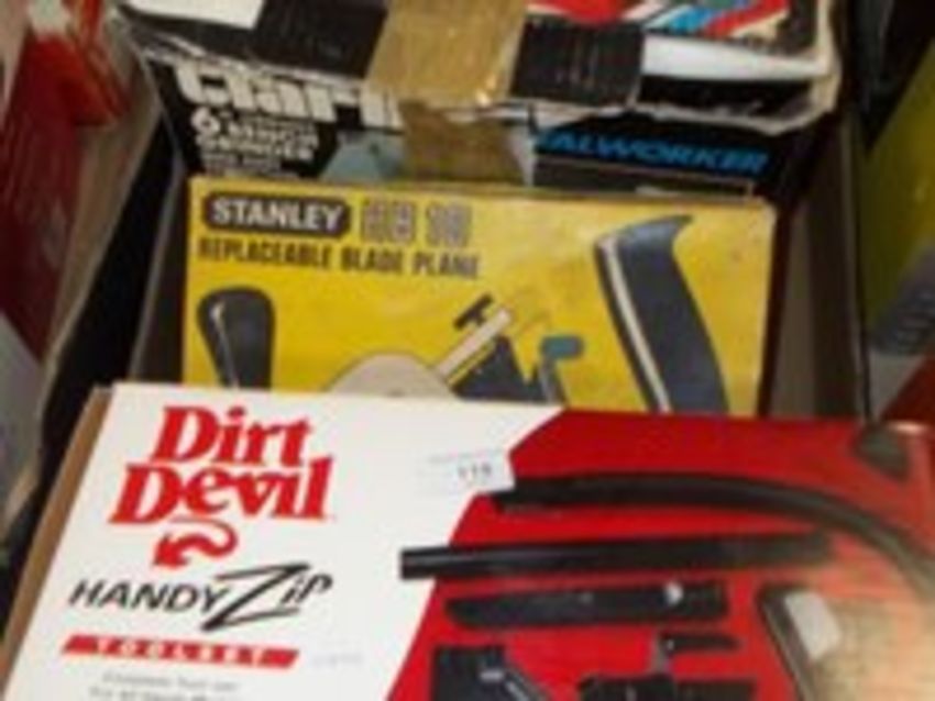A CLARKS 6INCH BENCH GRINDER TOGETHER WITH A STANLEY PLANE AND A STANLEY COMBINATION PLANE
