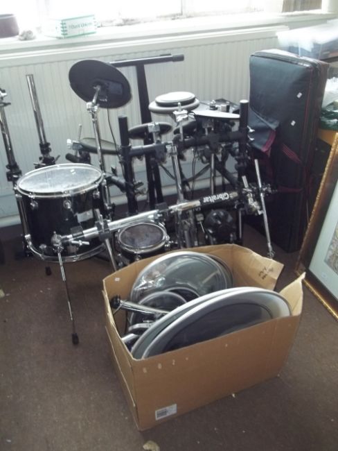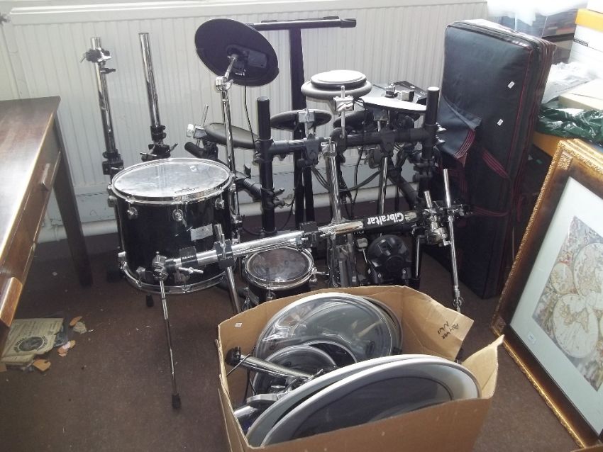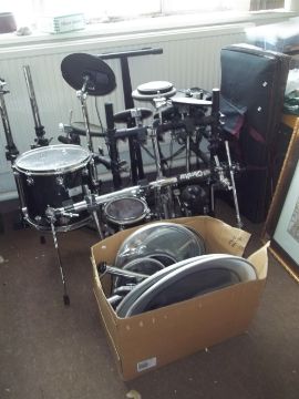 A ROLAND GIBRALTAR ELECTRIC DRUM KIT WITH EVANS DRUMS