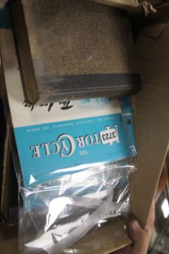 TWO BOXES OF EPHEMERA, TO INCLUDE VINTAGE NEWSPAPER, VINTAGE INDENTURES, BOOKS AND MOTORCYCLE MAGAZINES