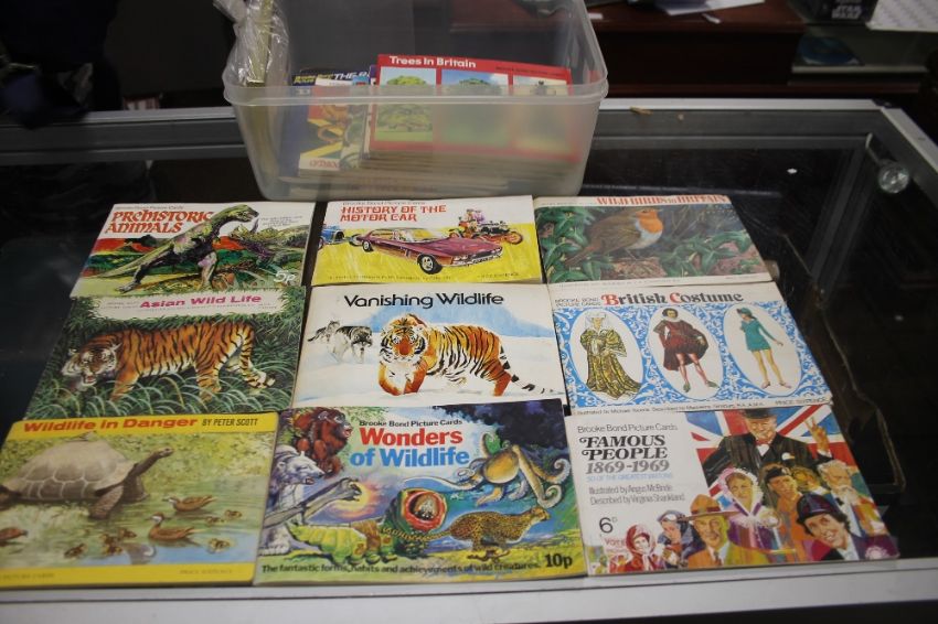 A BOX OF TEA AND CIGARETTE CARDS