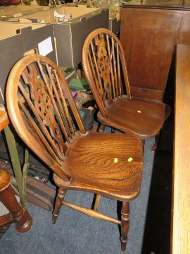AN OAK REFECTORY STYLE TABLE W-153 CM AND 4 WHEELBACK CHAIRS A/F
