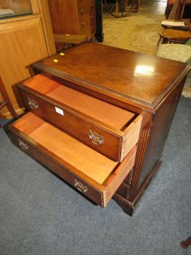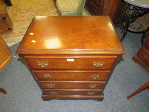 A 20TH CENTURY WALNUT FOUR DRAWER CHEST OF DRAWERS W-60 CM