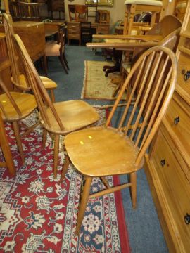 AN ERCOL STYLE DROPLEAF TABLE AND FOUR HOOPBACK CHAIRS A/F