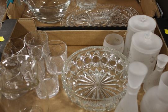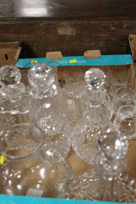 TWO TRAYS OF ASSORTED CUT GLASS ETC TO INCLUDE SHIPS DECANTER, DOULTON BOWL ETC