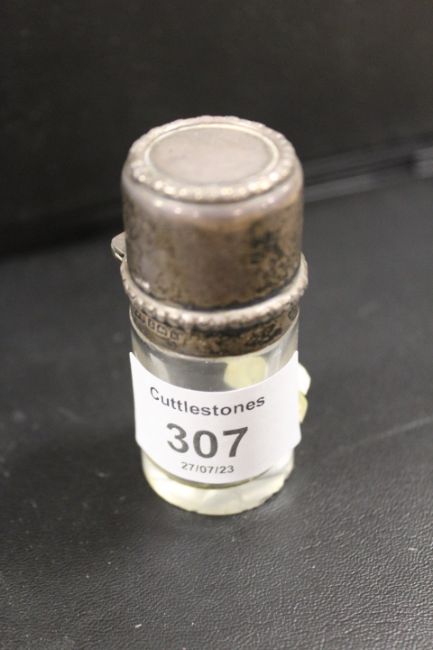 A HALLMARKED SILVER TOPPED SCENT BOTTLE - BIRMINGHAM 1910