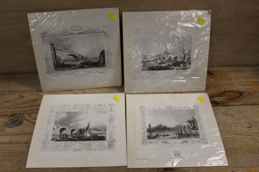FOUR SMALL VINTAGE ENGRAVINGS OF LONDON BRIDGES TO INCLUDE WATERLOO BRIDGE