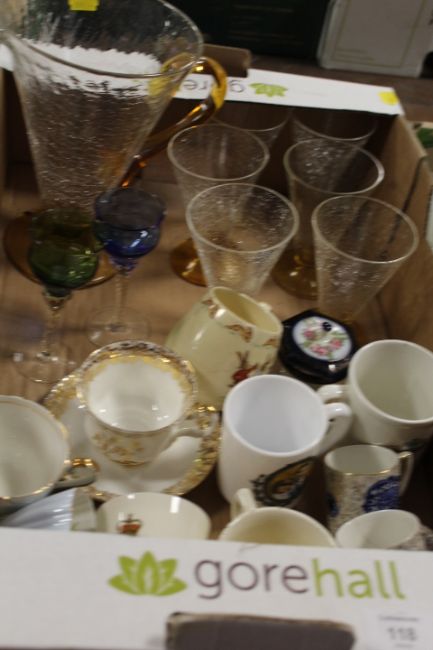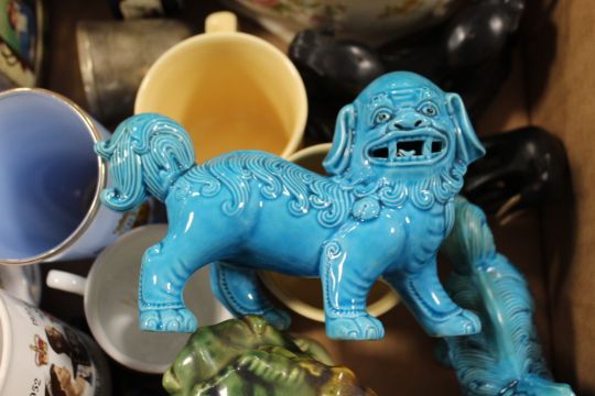 THREE TRAYS OF CERAMICS AND GLASS ETC TO INCLUDE DOGS OF FO, VINTAGE LEMONADE SET ETC
