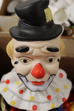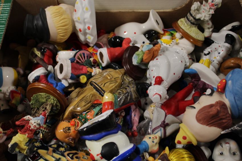 TWO TRAYS OF CERAMICS TO INCLUDE MANY CLOWN FIGURES