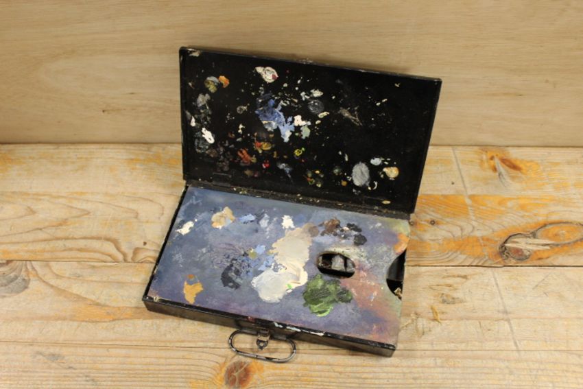 A VINTAGE TRAVELLING ARTISTS PAINT SET