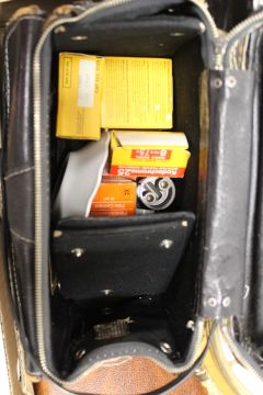 A TRAY OF VINTAGE CINE CAMERA EQUIPMENT ETC