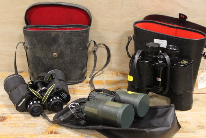 TWO VINTAGE CASED PAIR OF BINOCULARS TOGETHER WITH A MODERN PAIR (3)
