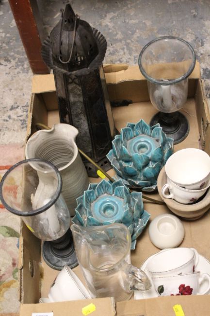 TWO TRAYS OF CERAMICS AND GLASS TO INCLUDE A CLOISONNE STYLE VASE