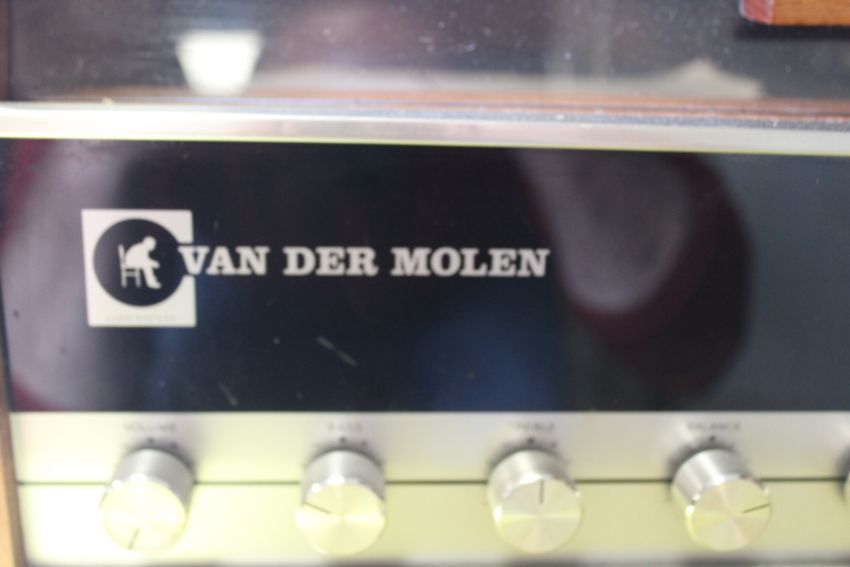 A VINTAGE VAN DER MOLEN SONIC 55 RECORD PLAYER WITH GARRARD MODEL 2025 TC TURNTABLE AND SPEAKERS