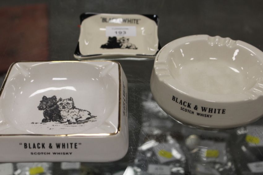 THREE VINTAGE BLACK AND WHITE WHISKY COLLECTABLE ASHTRAYS