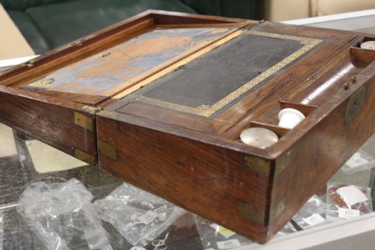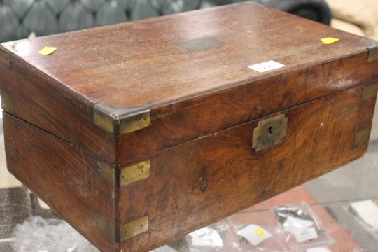 A VINTAGE BRASS BOUND WRITING SLOPE