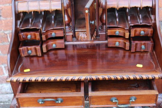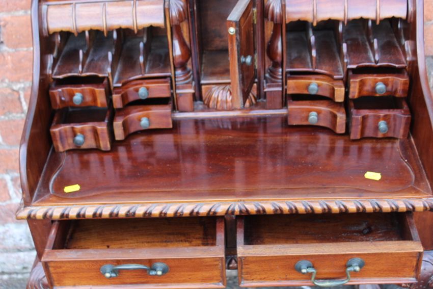 A REPRODUCTION MAHOGANY SMALL DESK ON CABRIOLE LEGS - W 71 CM