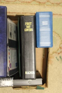 STAMP COLLECTION - A RANGE OF FDC's, WORLDWIDE IN 20 ALBUMS IN HEAVY BOX - MUCH OF INTEREST AND MOST UNADDRESSED