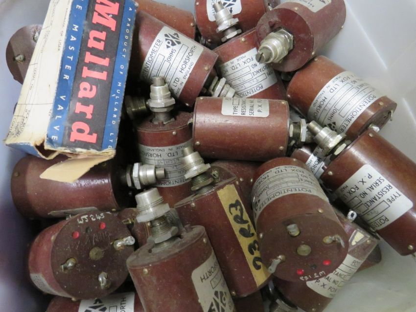 A LARGE SELECTION OF ELECTRONIC COMPONENTS TO INCLUDE POTENTIOMETERS, DIODE, RESISTORS, ETC